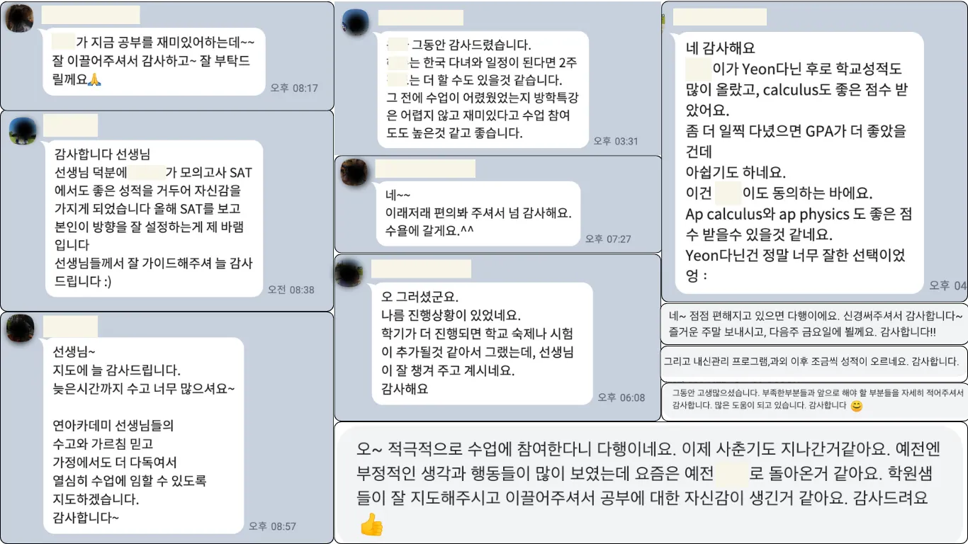 한국과 미국에서 사교육, 공교육, 대학입시 그리고 취업까지 많은 시행착오를 직접 부딪히며 찾은 공식을 YEON만의 커리큘럼에 녹여냈습니다.
