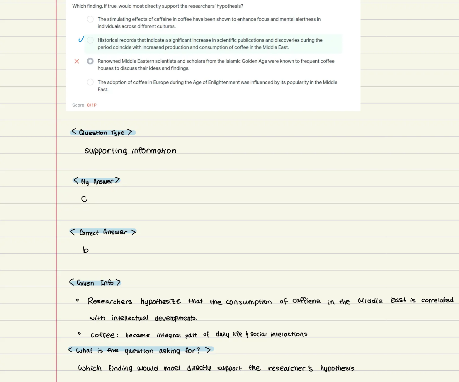 학생의 강점과 약점 파악, 개별 학습방법을 수립하기 위한 오답노트
