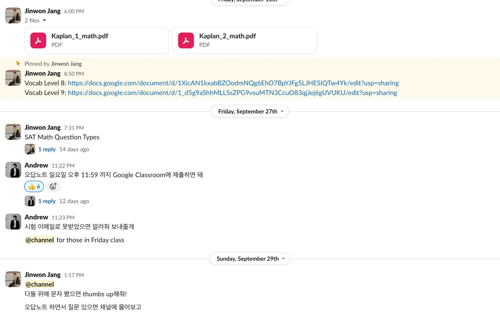 학생들이 언제든지 질문하면 2시간 이내로 답장합니다.