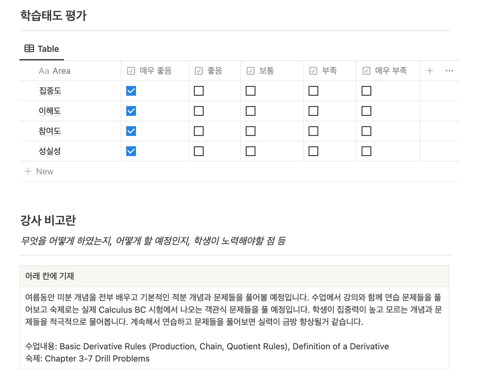 진행상황 및 학생의 학습상태, 개선점, 그리고 학습계획이 면밀히 기재되어 학부모님께 공유해드립니다.